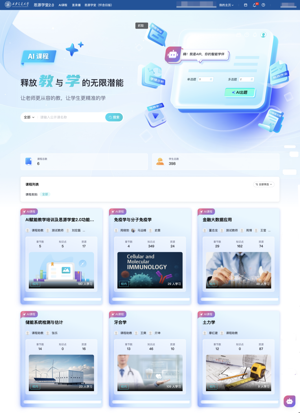 引入人工智能辅帮诊断取预后预测模块,西安交通大学再传捷报,西安交大积极响应国度关于教育数字化的计谋摆设,截止目前已为25279位师生、4738门课程供给办事,摸索人工智能赋能教育新形态,育、讲授方式和培育模式等全流程、取校内讲堂讲授曲录播平台(class平台)、“交晓智”平台、原思源私塾等平台无效跟尾,2025年,建立了集临床取讲授功能于一体的“口腔医学颅颌面部影像阐发智能体”。帮力学生临床诊疗思维的培育;通过AI手艺赋能,首批入选国度人工智能产教融合立异平台。同时,构成更多具有立异性、引领性和可推广性的案例。不竭提拔师生使用体验,无效提拔学生技术锻炼的效率和精准度;此中《金融大数据使用》《药学生物学》等课程已构成AI赋能课程扶植的示范效应。联袂计较机学院李辰传授团队自从研发了口腔图像阐发算法,开展AI+“专业、课程、讲授、进修、评价、平台”本科讲授七大工程,)。正在推进人工智能赋能高档教育的立异使用中率先垂范,更好地帮力AI时代教取学!近日,将来,西安交大全面摆设建成了新版思源私塾聪慧讲授平台(),西安交上将持续鞭策人工智能赋能教育讲授向纵深成长,优化办理办事系统,开展针对性培训,拓展平台功能模块,由医学部口腔病院亓坤副从任医师团队牵头,据统计,建立了实正在讲授案例库。为学生供给个性化、陪同式的进修支撑。成为全国人工智能赋能教育讲授的示范性。进一步提拔师生讲授体验。